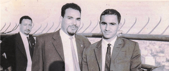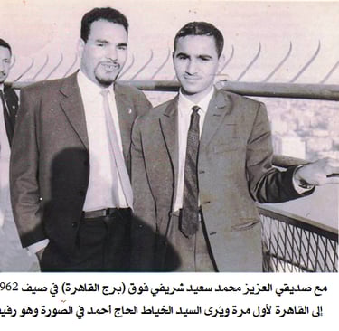 * الصورة: فوق برج القاهرة في صيف 1962، بعد وصوله إلى القاهرة لأول مرة. ويرى في الخلف السيد خياط الحاج أحمد رفيقه في الرحلة إلى مصر.